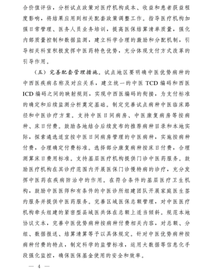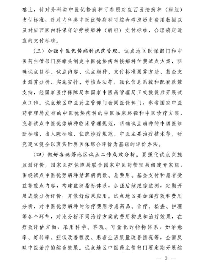 ·针对中医优势病种按病种付费的特点,制定科学的监管标准,运用大数据等信息化手段强化监控,确保医保基金使用的安全和效率。