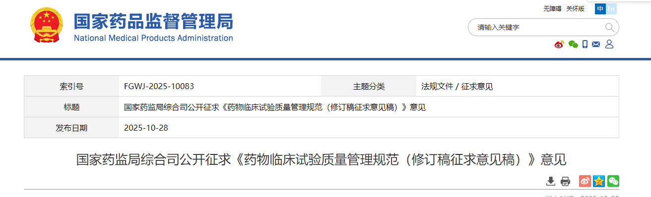 为进一步推动我国药物临床试验高质量发展,国家药监局组织起草了《药物临床试验质量管理规范(修订稿征求意见稿)》(具体内容及起草说明见附件1、2),现向社会公开征求意见。