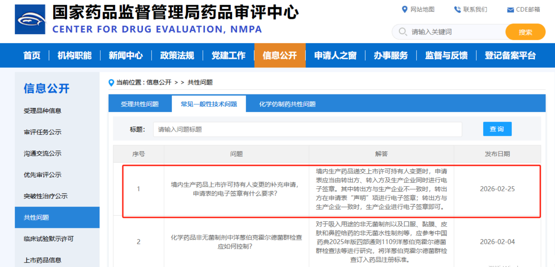 1、境内生产药品上市许可持有人变更的补充申请,申请表的电子签章有什么要求?